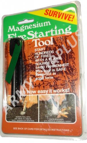 - křesadlo má z jedné poloviny magnesium, které se naškrábe na drobné piliny, které se zapálí za pomocí křesadla