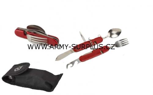Nůž s příborem červený Camping zavírací Pentagon
